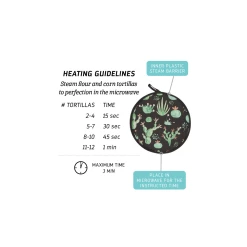- Plastic steam barrier keeps tortillas warm throughout mealtime