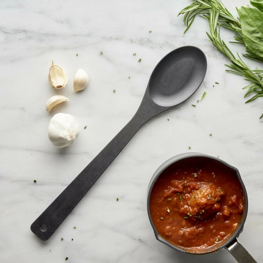 If you are looking for more universal wooden spoons, the Epicurean Chef Series Large Spoon in the slate color is a must-have for you. This unique spoon is made from a composite material, so it is durable and won’t split or crack like traditional wooden spoons. This material is also eco-friendly and heat-safe up to 350°F, so it’s a great option for any home or professional chef. This large spoon features a long handle so it’s easy to stir even large stockpots, and with a wide mouth, you can easily move ingredients around and even taste your creations with ease. Why struggle with less durable alternatives? Get the Epicurean Chef Series Large Spoon in slate today!