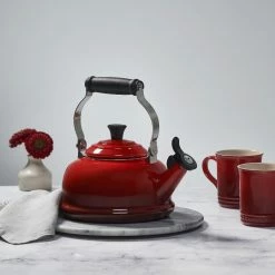 Elevate your tea parties with the elegant Escali RiteTemp Gooseneck Kettle with Thermometer! Crafted from high-quality stainless steel, it is compatible with all stovetops, including induction, and it features a tight-sealing lid with built-in color-coded thermometer to help you manipulate the temperature of the water for your coffee, tea, and milk. The temperature dial provides the following temperature suggestions for different kinds of beverages: