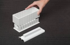 Add tasty rolled sushi to your meal with ease using the sushi-making kit from Helen’s Asian Kitchen. Included are 3 different-sized and shaped molds, a rice paddle, and a spatula to construct the delicious rolled treat. The sushi-making large mold creates thicker futo-maki sushi, the small mold produces thin hoso-maki sushi and the heart-shaped mold is great for special occasions. The plastic construction includes slots to cut the sushi into perfect-sized portions. Helen’s Asian Kitchen combines crafting authentic Asian cuisine in the added convenience of the home kitchen with the sushi-making kit.