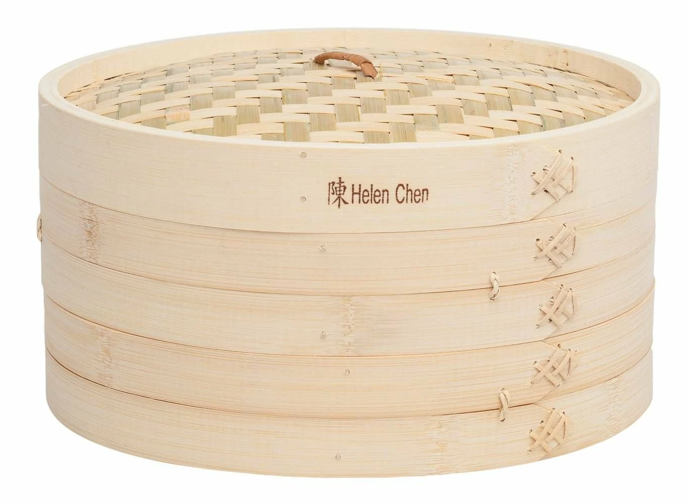 Add to the authentic atmosphere of preparing traditional asian meals with a two tier bamboo food steamer from Helen’s Asian Kitchen. The all bamboo construction features two cooking tiers and lid for steaming meats and vegetables. The 12 inch diameter prepares enough food for a gathering of friends or family meal. Embrace the all natural construction and enjoy the authentic meal prepared in traditional methods using the two tier bamboo steamer from Helen’s Asian Kitchen.