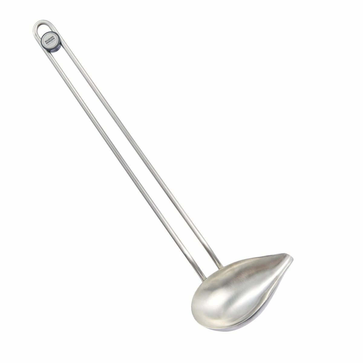 Never over-pour your sauce again with the Kuhn Rikon Essential Sauce Ladle. This uniquely designed ladle features a no-drip side spout so you can pour sauces with precision. The deep ladle allows you to pour liberally and with ease. The Sauce Ladle features a stainless steel body and head so it is extremely durable and is dishwasher safe. Add a splash of flavor, get the Kuhn Rikon Essential Sauce Ladle today.