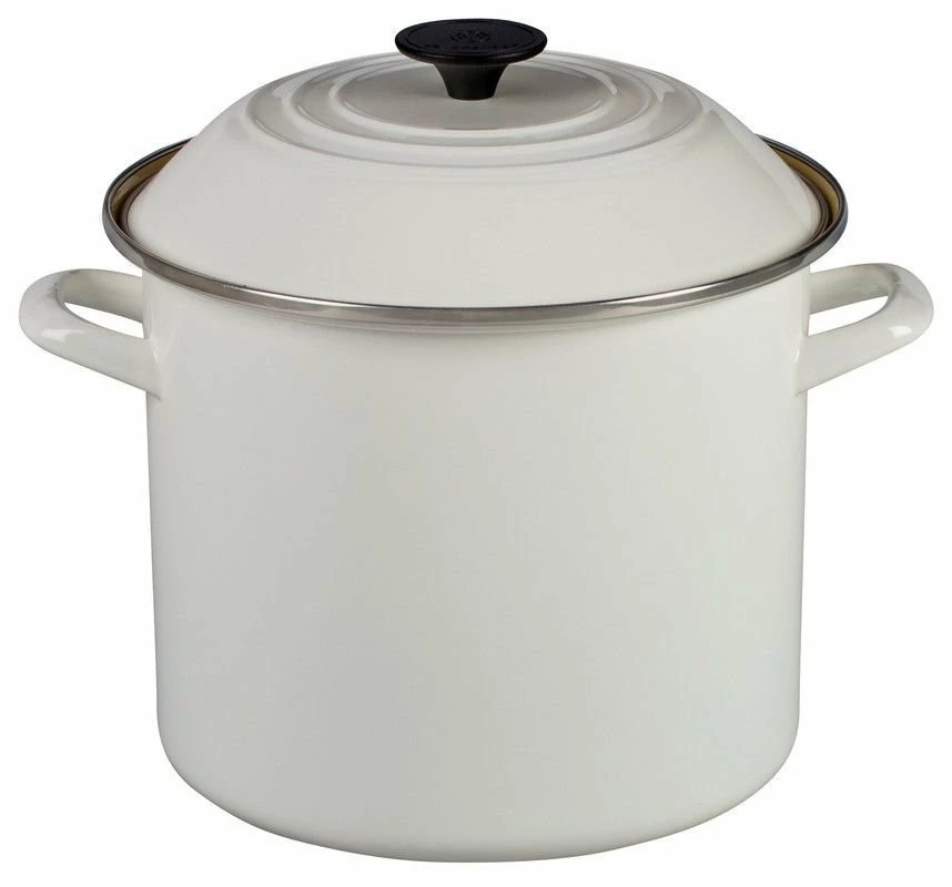 With its extra large ergonomic handles, this enamel 10 quart stockpot is also built so you can move the pot from stove to oven and back again with minimal strain on your wrists. From your secret home-made chili recipe to hearty beef stews, cook to please with Le Creuset’s lovely 10 Quart Stock Pot in white.