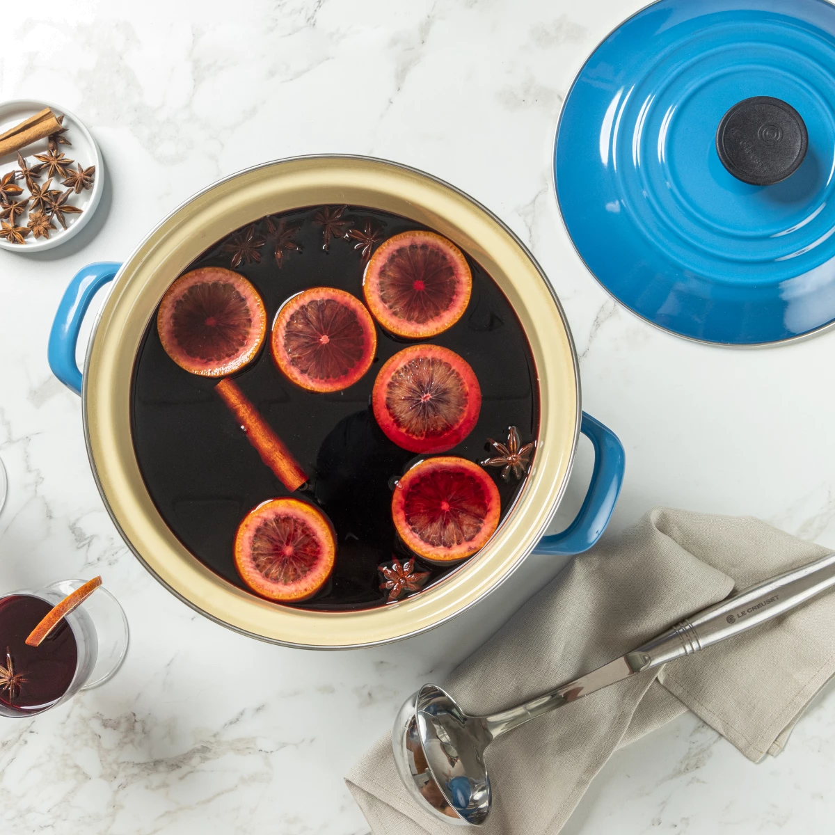 Bright and styling this Le Creuset Stock Pot in Marseille is sure to liven up any kitchen. The design of these Le Creuset stockpot limits evaporation causing liquids to mix and bubble together giving your entire dish rich flavor. Safe to use on any heat source from electric to halogen. The stainless steel rim helps to prevent cracking of chipping of the sleek Marseille porcelain enamel. Follow simple care instruction to ensure enjoyment of your Le Creuset 8 qt stockpot for years to come.