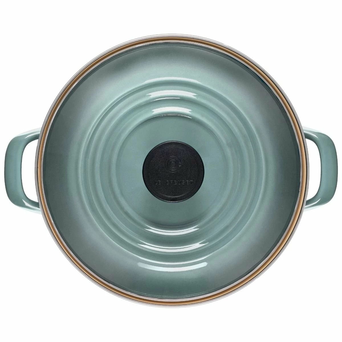 Bright and styling, this Le Creuset 8 Qt. Stock Pot in Sea Salt is sure to liven up any kitchen. The design of these Le Creuset stockpot limits evaporation causing liquids to mix and bubble together giving your entire dish rich flavor. Safe to use on any heat source from electric to halogen. The stainless steel rim helps to prevent the cracking or chipping of the sleek Marseille porcelain enamel. Follow simple care instructions to ensure the enjoyment of your Le Creuset 8 Qt. Stock Pot for years to come.