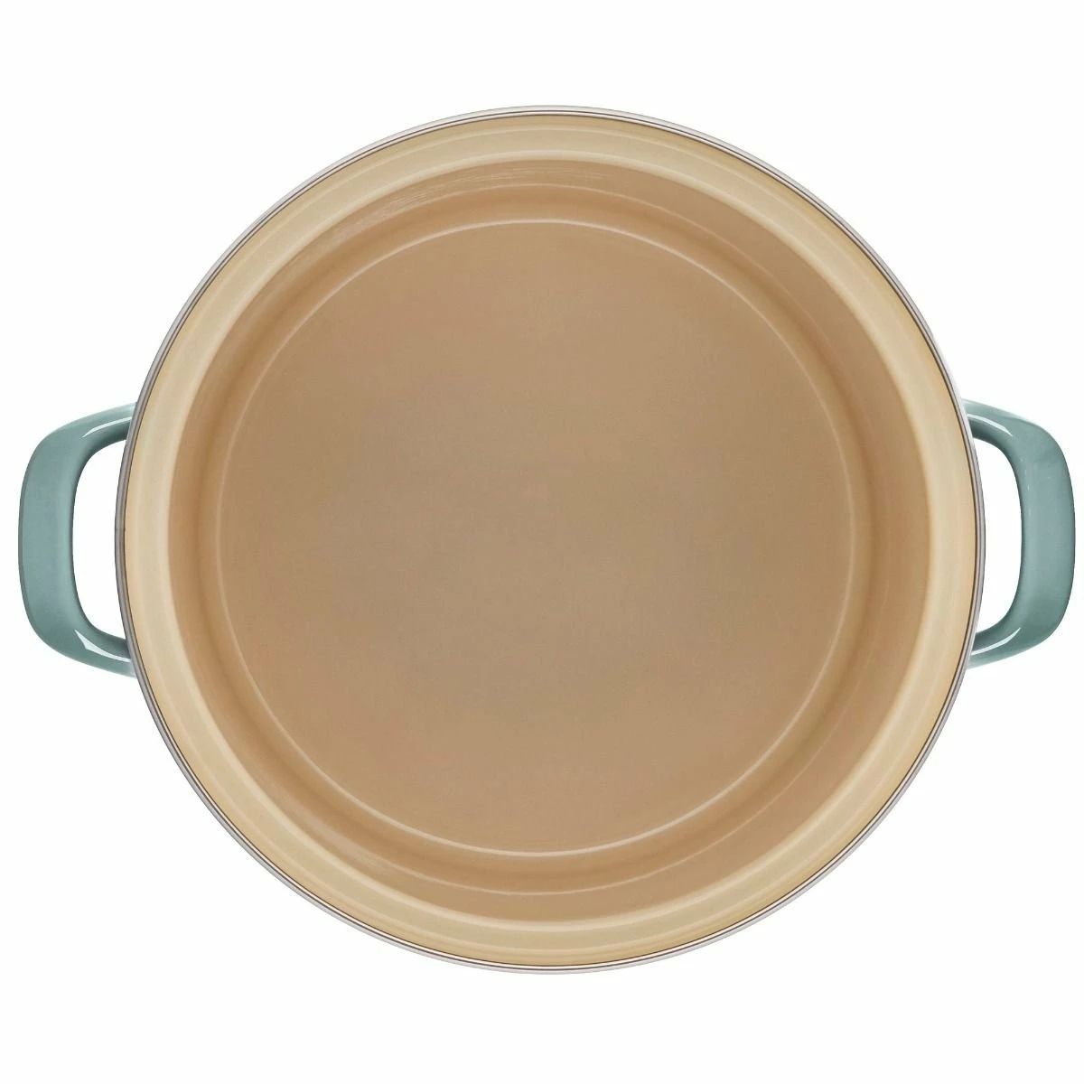 - Constructed from heavy-gauge carbon steel with a durable and colorful porcelain enamel