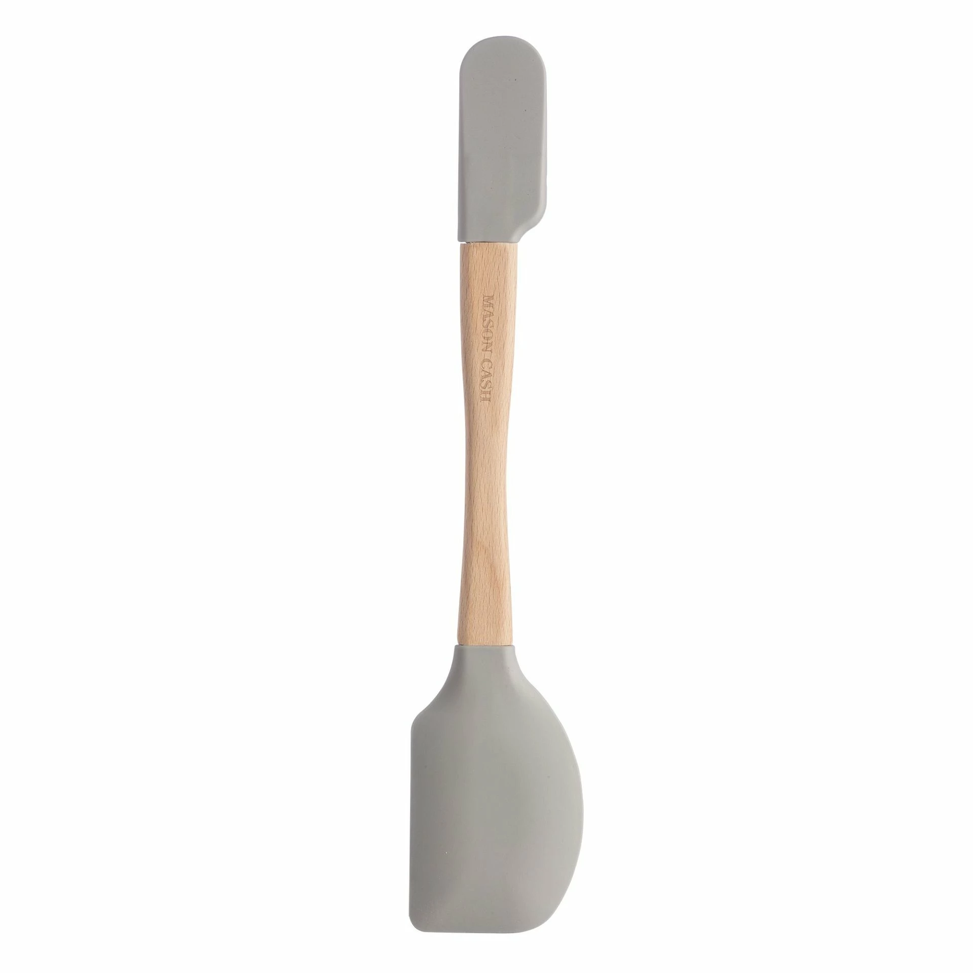 Get the most out of every kitchen utensil with the Mason Cash Innovative Kitchen collection! This Spatula serves triple duty as a spatula, bowl scraper, and spreader in one. The larger silicone spatula head is ideal for mixing ingredients and making batters. Removable, to make scraping bowls and pans effortless, you can easily maneuver it into tight corners and scrape every bit of batter or frosting from the bowl. The smaller spatula is perfect for icing cakes and cookies or scraping every bit of jam from the jar. A good spatula is essential for every kitchen; make yours this double-duty, dual-ended one by Mason Cash!