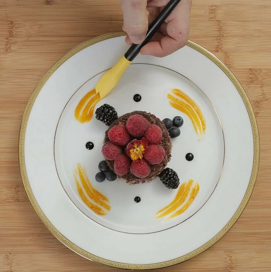 Give your steaks, sushi, & desserts the presentation they deserve with this silicone plating brush from Mercer Culinary. The yellow Mercer silicone plating brush has a saw tooth silicone head to rake through sauces & glazes to give your entrees & sides the professional treatment.