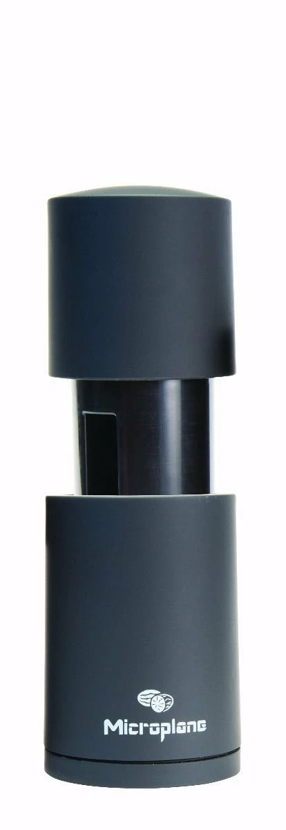Add a bold sprinkling of cinnamon to sweet potatoes or mellow nutmeg flavor to a cream sauce with Microplane’s Spice Mill in Black. This manual spice grinder requires only light pressure to operate so adding a fine dusting of hard spices to your recipes is an easy feat. With a soft-touch coating on the body, it’s comfortable to hold and to operate. The grinding mechanism has a whopping 128 ultra-sharp teeth that perfectly grind the most challenging spices. Using the spice mill is simple: simply remove the plunger to place spices in the base; replace the plunger and push down on the top; and then twist clockwise to grind. Smartly designed with airtight storage on top, you can slide the partially ground cinnamon stick or nutmeg inside so it stays fresh. Get the most flavor out of hard spices by grinding them yourself. It’s easy with the Microplane Spice Mill!