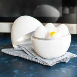Cook perfect hard- or soft-boiled eggs to perfection in the microwave in 10 minutes or less. Cooks up to four eggs at a time. No guesswork!