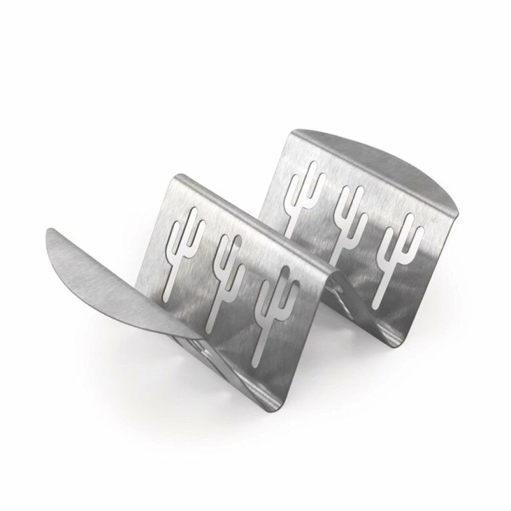 Do tacos go with grill outs and barbecue? If your answer is βno,β youβre obviously joking! Check out the Nordic Ware Stainless Steel Taco & Ribs Grilling Rack! This neat rack can crisp up your tacos and brand a cool cactus mold into the shell, giving it that authentic Mexican restaurant quality with desert flair! That mold can grill into your ribs, as well, for this shape is designed to heat at an angle with the juicy portions closer to the grill for better heating. When you are done, handwash only. Why not toast taco shells before grilling ribs in your backyard? You totally can and rock grill-outs this summer with the Nordic Ware Stainless Steel Taco & Ribs Grilling Rack, proudly made in the USA!