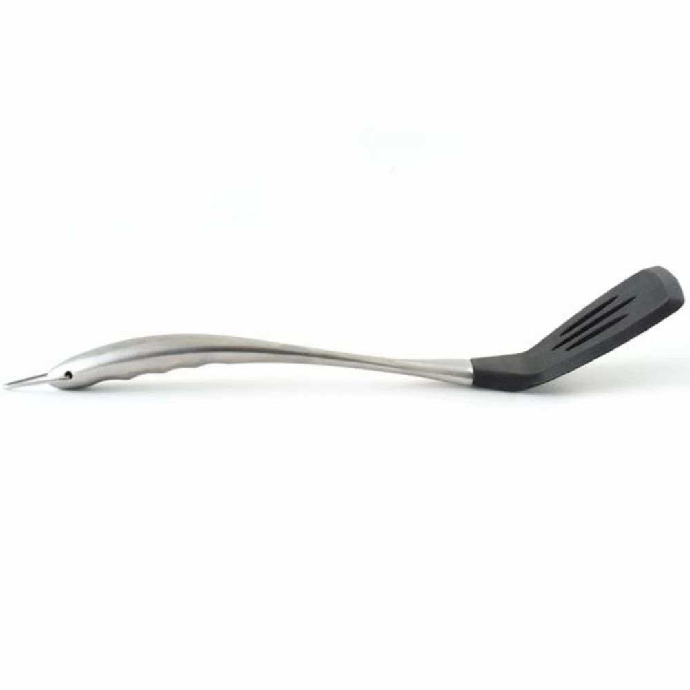If you are looking for durable utensils that will look great in your kitchen, the Norpro Stainless Steel and Silicone Slotted Turner is for you. This turner is made from the two most durable kitchen materials with a stainless steel body and a silicone head. This makes it heat resistant up to 482°F, perfect for flipping burgers or stirring meat straight on the cooktop. The slotted head is also great for draining excess liquids and oils. The modern design includes a hanging hook at the base so itās easy to store even in small kitchens with little counter space! To make this turner even more desirable, itās dishwasher safe. Dish up a delicious meal with the Stainless Steel and Silicone Slotted Turner, get yours today!Ā
