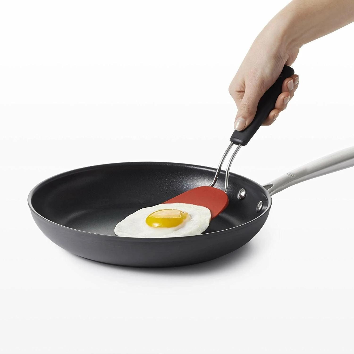 Turn pancakes, fish, and more with ease using the OXO 2-Piece Nylon Flexible Turner Set. These durable turners have a stainless steel arm and nylon head and handle, one a bright red and the other vibrant blue. This flexible turner is safe to use on pans of all types, from stainless steel to nonstick making it the ultimate kitchen utensil. These turners are great for cooking specific ingredients and guests with allergies. Flip-up your favorite ingredients and make delicious meals for everyone you know with the OXO 2-Piece Nylong Flexible Turner Set.