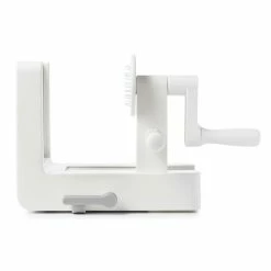 Feed your loved ones deliciously healthy vegetables in fun and creative ways with this OXO Good Grips 3 Blade Tabletop Spiralizer! This 3 blade spiralizer comes with the spaghetti cut blade, fettuccine cut blade, ribbon cut blade, a base with a hand crank, and a blade box that fits onto the board for easy storage.