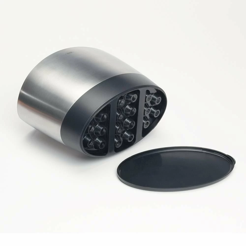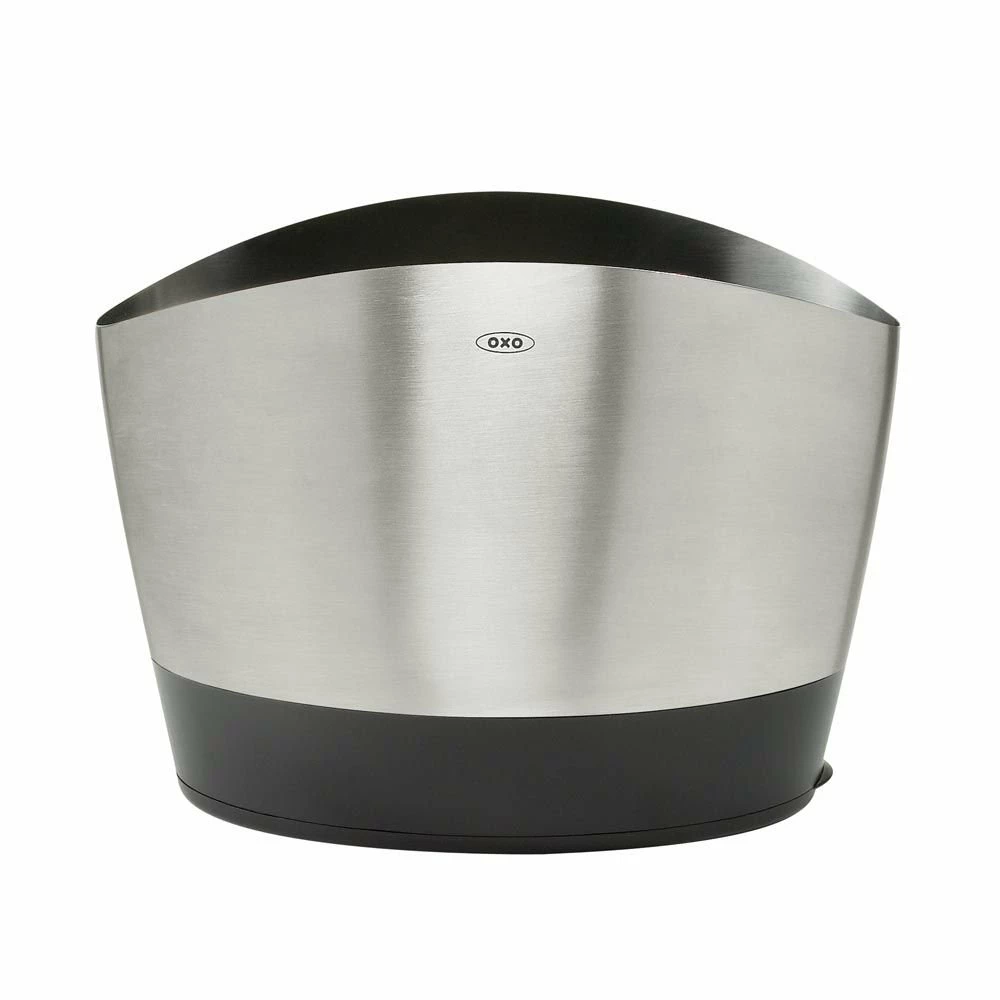 With the OXO Good Grips stainless steel utensil holder, grabbing that wooden spoon so you can sample the latest cream reduction should be a quick, practically automatic operation. The OXO stainless utensil holder equipped with a contoured bottom all of your long handled utensils stay upright and in place even when half empty. The brushed stainless steel exterior adds a radiant ambiance and is dishwasher safe. OXO known for their practical design principles, incorporates a removable drip tray so you can dry your utensil when you store them.