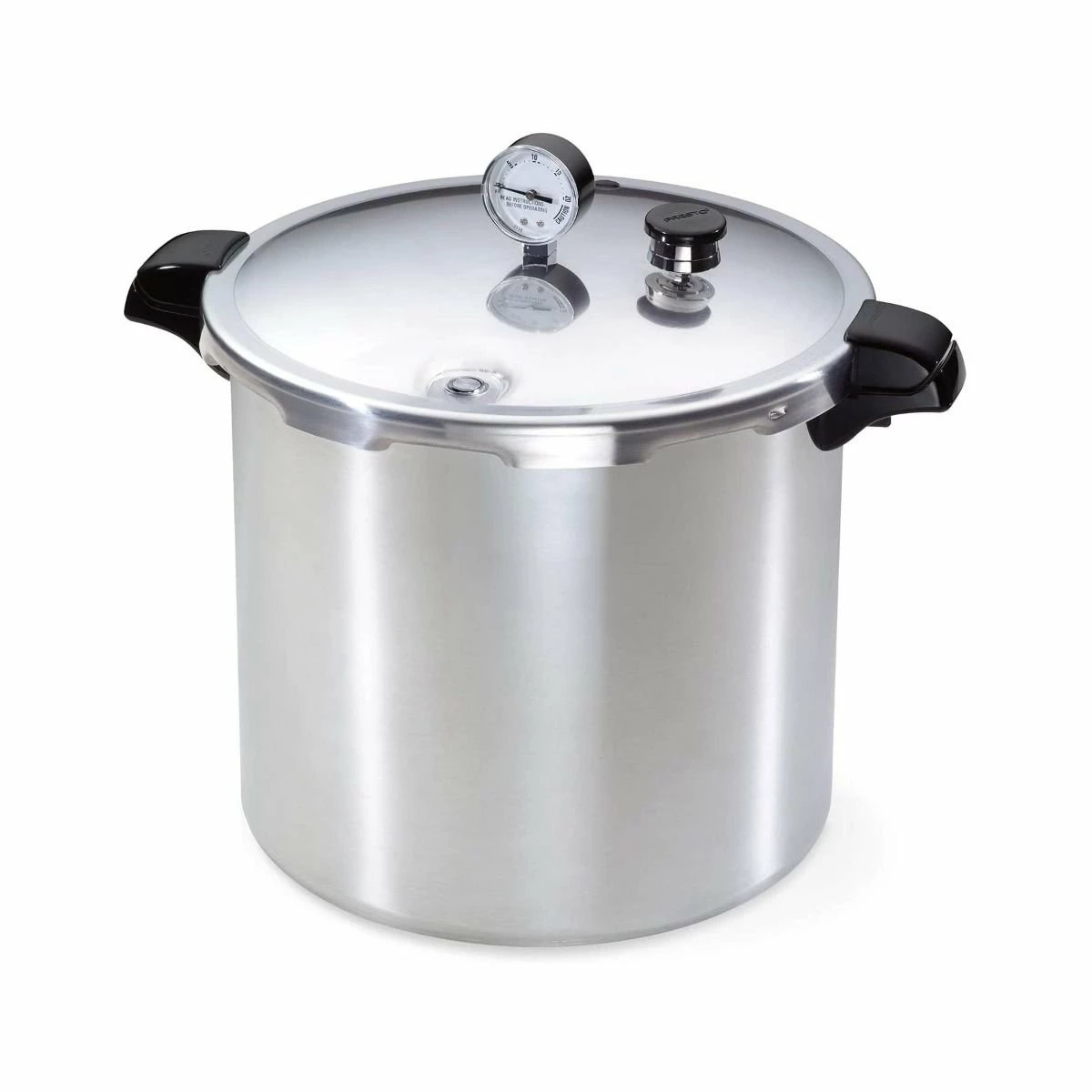 An essential part of the do-it-yourself, self-sufficient lifestyle is producing your own food for the present and the future. The Presto® Induction Compatible Pressure Canner (23 Qt.) will allow you to safely can and store your vegetables, salsas, meats, and seafood. Designed for use on gas, electric, smooth top, AND induction ranges, this full-sized consumer pressure canner has a capacity of 26 half-pints, 20 pints, and 7-quart Mason-style jars. The heavy-gauge polished aluminum canister is clad with a stainless steel base for fast and even heating. The canner is also outfitted with useful safety features. An easy-to-read deluxe pressure gauge automatically registers a complete range of processing pressures and a pressure regulator allows for the releasing of excess pressure from the unit. The air vent/cover lock allows pressure to build up only when the cover is closed properly and prevents the cover from opening until the pressure has been reduced to a safe level. Have fruits you want to turn into jams and jellies? This canner will handle the task with ease. Founded in 1905 in Eau Claire, Wisconsin, National Presto® Industries has stood the test of time and with this Induction Compatible Pressure Canner so will your stored goods!