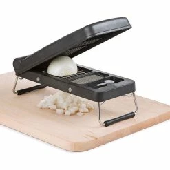 Chop, dice, and mince your fresh produce with Progressive’s PL8 Professional Chopper! This professional food chopper has three stainless steel blade settings. The 1/2″ chopping blades are ideal for blocks of tomatoes, mangoes, and ham. The 1/4″ dicing blade tackles all of your onion, carrots, and salsa ingredients. Finally, the 1/8″ blades are for mincing stronger produce, such as garlic or spices. Chop the produce directly over a cutting board or into the removable bin that’s included with the chopper. Progressive’s PL8 Profession Chopper is an excellent device to eliminate food preparation time and restaurant-styled cuts.