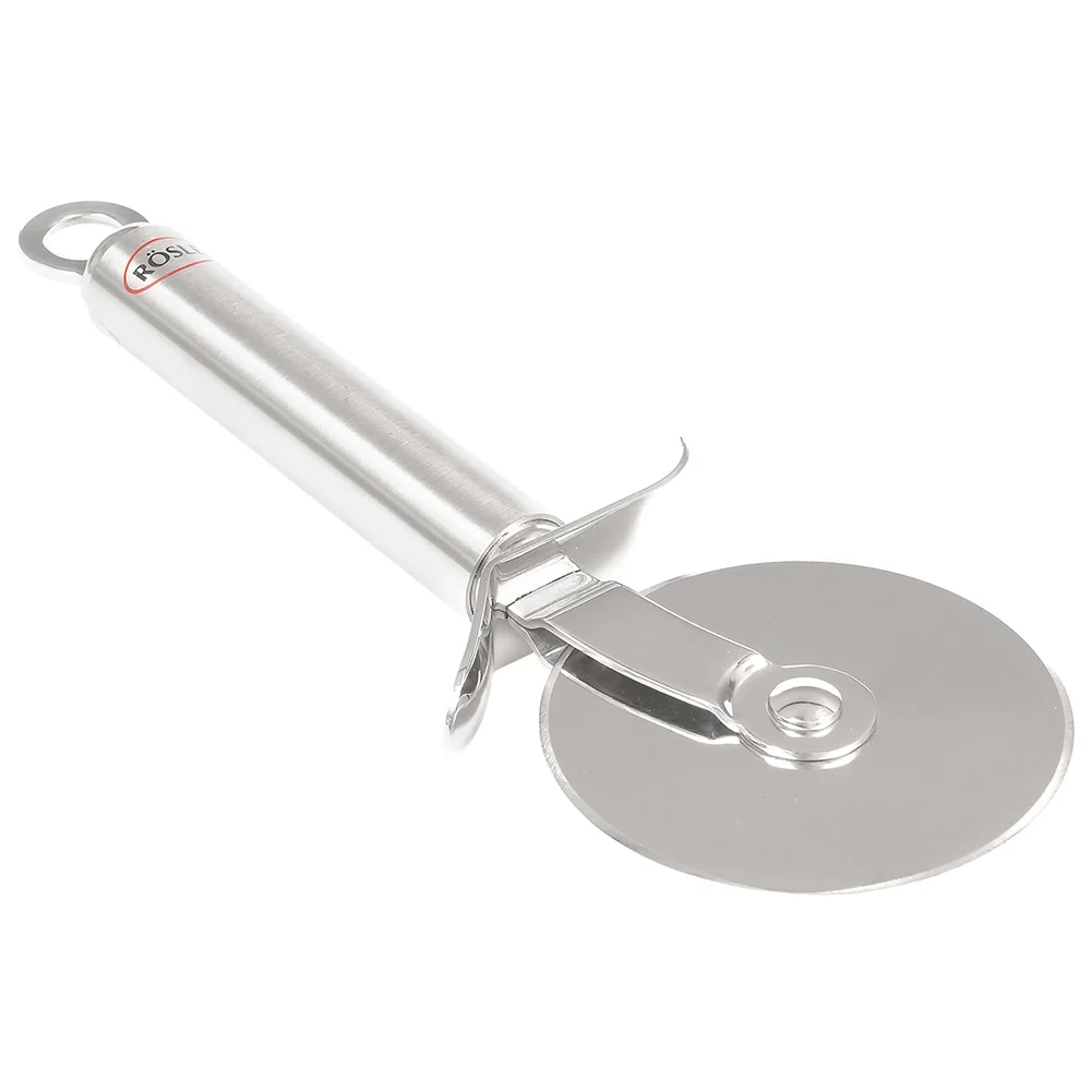 With a firmly anchored, strong wheel, the Rosle pizza cutter slices through thick and thin pizzas without displacing toppings. Its stainless steel construction is long-lasting and prompt to clean, while its handle ensures a comfortable grip. When inactive, it can be stored on its integrated hanging ring for convenience.