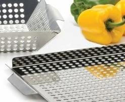 - BBQ Grill Pan with perforated vents for even heat distribution and quick cooking