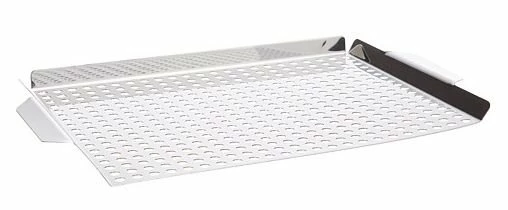 This BBQ Grill Pan is part of an extensive Grillware Collection from RSVP. The heavy stainless steel construction with perforated vents allows for quick cooking and even heat distribution. The BBQ grill pan measures 17.5″ X 11″. The raised sides allow for BBQ platter to be moved around and off the grill easily, and keeps food out of the fires.