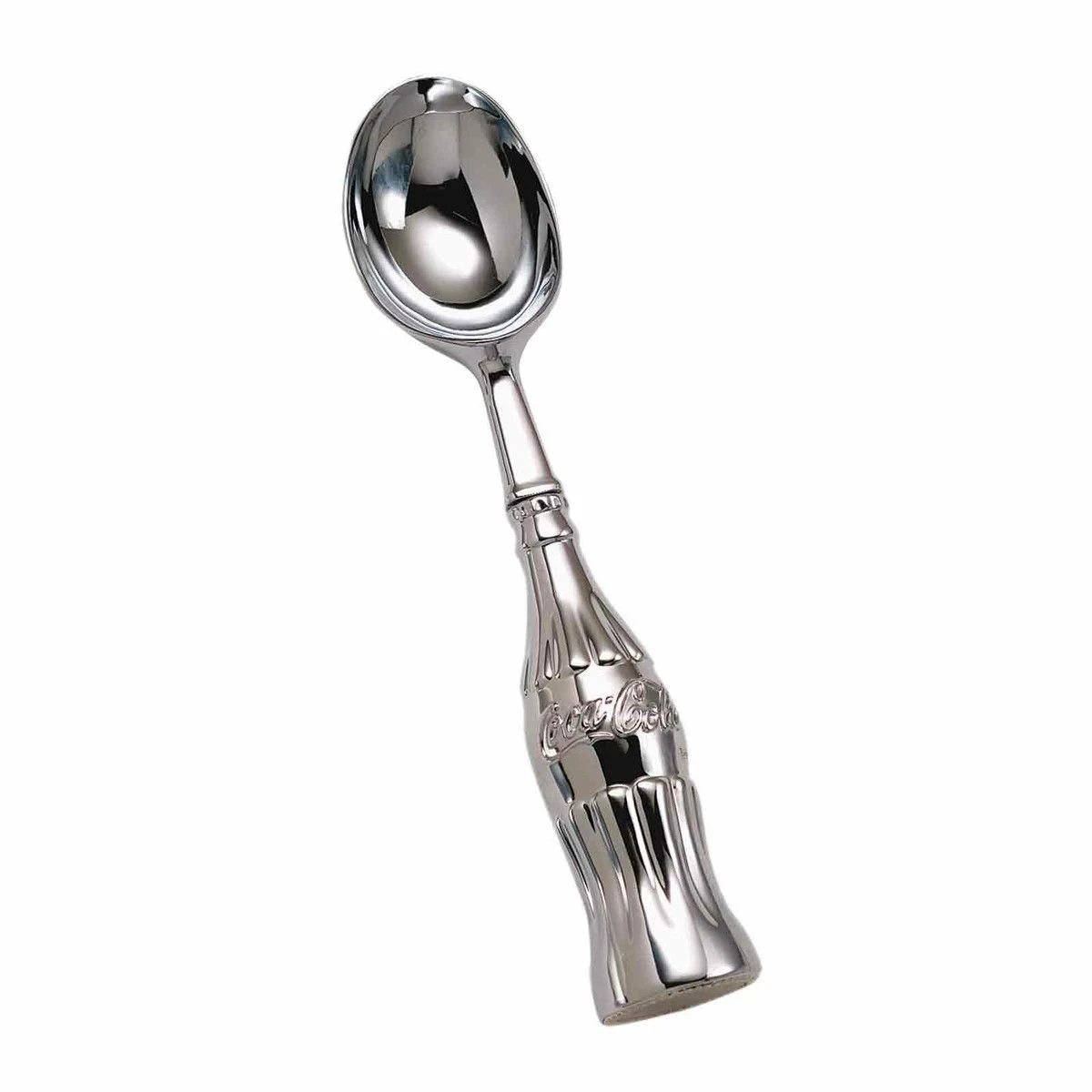 Serve scoops of your favorite frozen treats with a touch of vintage style using the TableCraft Coca-Cola Contour Ice Cream Scoop! Perfect for Coca-Cola collectors and ice cream fanatics alike, this chrome-plated zinc alloy ice cream scoop brings the nostalgic feel of an old-time ice cream parlor to your home. The adorable handle that resembles a vintage Coca-Cola bottle adds whimsy to your kitchen while providing a comfortable and firm grip when dishing ice cream, sorbets, and other frozen treats.