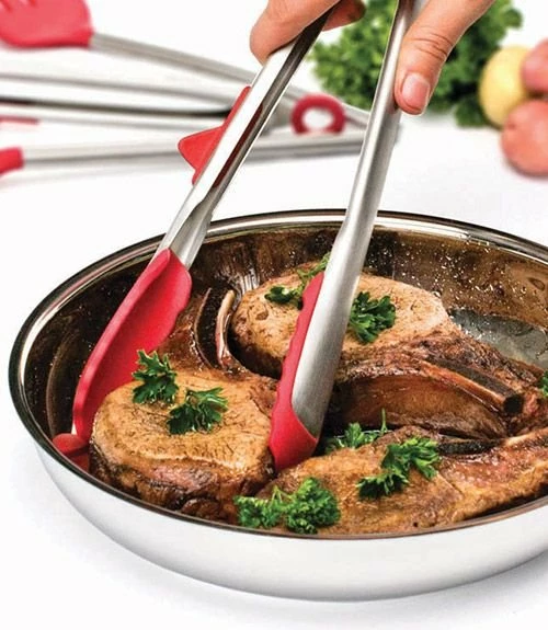 Flip grilled cheese and hamburger patties like a pro with Tovolo’s Charcoal Silicone-Tipped Locking Tongs! These tongs are crafted with silicone heads that won’t scratch cookware, making them perfect for nonstick sets. The side of the tongs includes a resting foot to keep counters clean and improve sanitation. Tovolo’s Silicone-Tipped Locking Tongs are excellent for a quick breakfast or a large family meal!